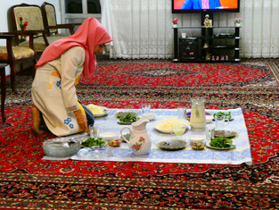 I must admit we were nervous about meeting his family as we weren’t too sure on the etiquette of such a visit being a western unmarried couple but on arrival at his home we were greeted by the warm smile of his mother and sister who encouraged me to take off my head scarf off and my tunic and like Masood, wanted us both to be free. As much as we were nervous about meeting his family, I could sense they were just as nervous about meeting us but as the evening wore on and as we spent the evening conversing with his younger sister Nazila who spoke a little english and who that weekend had an english exam so we tried to help her study. His mother cooked us up a delicious traditional Iranian dish called Ash and we ate the Iranian way which is on the carpet floor in the middle of the sitting room, a new experience for us both and one in which Paul could only just about manage with his big dangly legs!